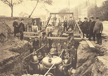 Seit der Erhebung zur kaiserlichen Marinestadt 1871 entwickelt sich Kiel explosionsartig. Für den Ausbau der Gas- und Wasserver- und -entsorgung stellt Rud. Prey Verteilerstationen her.
