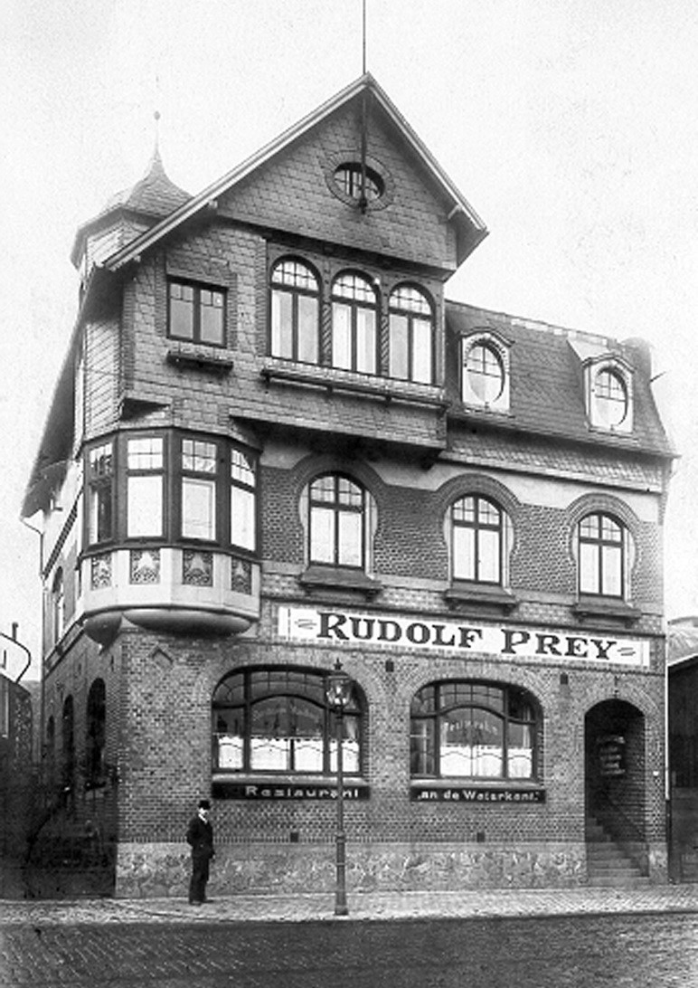 Rudolf Prey I. erwirbt aus der Konkursmasse des Schiff- und Maschinenbaubetriebes Conradi das zwischen Bahnhof- und Innenhörnkai gelegene Gelände in der Kaistraße 26 (später 58-62) und verlegt als erstes die Verwaltung und den Wohnsitz vom Ostufer auf das Westufer.