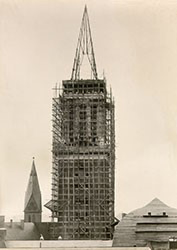Rud. Prey errichtet für das Kieler Rathaus neben dem Paternoster, dem Turmaufzug und dem sogenannten „Kaiseraufzug“ auch die Stahlturmspitze und die Kollegiensaal-Tragwerkkonstruktion in Form eines kieloben liegenden Schiffsrumpfes.