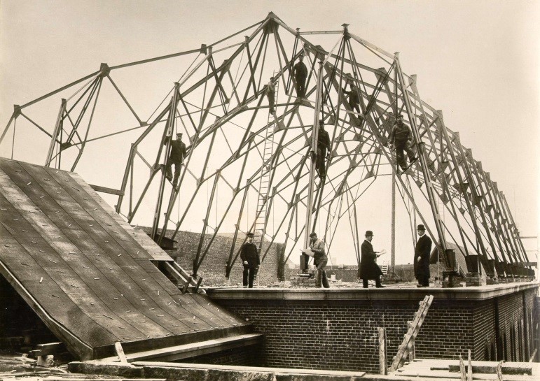 Die erste zweigeschossige Fertigungshalle aus hochmodernem Stahlbeton wird auf dem frisch erworbenen Gelände errichtet … und bricht unmittelbar im Anschluss unter tragischen Umständen in sich zusammen: Vier Arbeiter kommen dabei ums Leben.